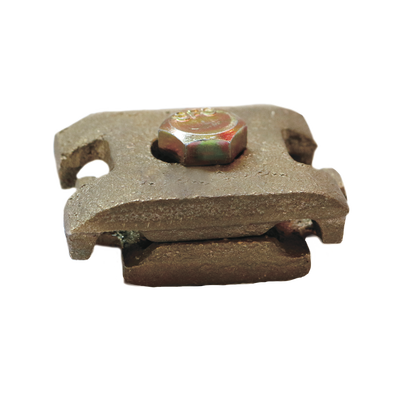 Abrazadera para tierra fabricada en bronce, complementada por 1 tornillo hexagonal tropicalizado de 3/8” x 3/4”.